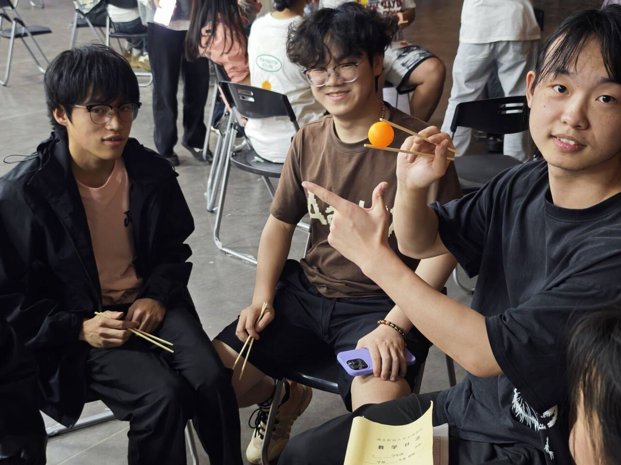 活动开始,破冰游戏迅速点燃现场氛围,同学们在欢声笑语中打破陌生感。随后的“筷子传球”环节,老师们也加入挑战,与同学们默契配合,展现了亦师亦友的亲密互动。“气球保卫战”和“抢凳子”游戏更是将气氛推向高潮,大家在竞技中学会协作,在欢笑中释放压力。“拍卖会”环节别出心裁,同学们通过虚拟竞拍分享自己的价值观和人生目标,而“听歌识曲”则让音乐成为情感的纽带,引发共鸣。活动现场气氛热烈欢快,同学们在轻松有趣的游戏中逐渐卸下压力,整个音乐厅充满了活力与温暖,活动氛围融洽,大家在欢声笑语中真正实现了放松身心、愉悦交流。