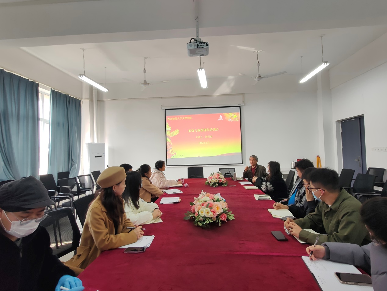 为切实提高形势与政策课教学质量,确保本学期形势与政策课教学工作的顺利开展,3月3日下午,马克思主义学部在3号实验楼508会议室召开2023年春季学期形势与政策课教师培训会。此次会议由马克思主义学部主任周青山主持,学校全体形势与政策课教师参会。