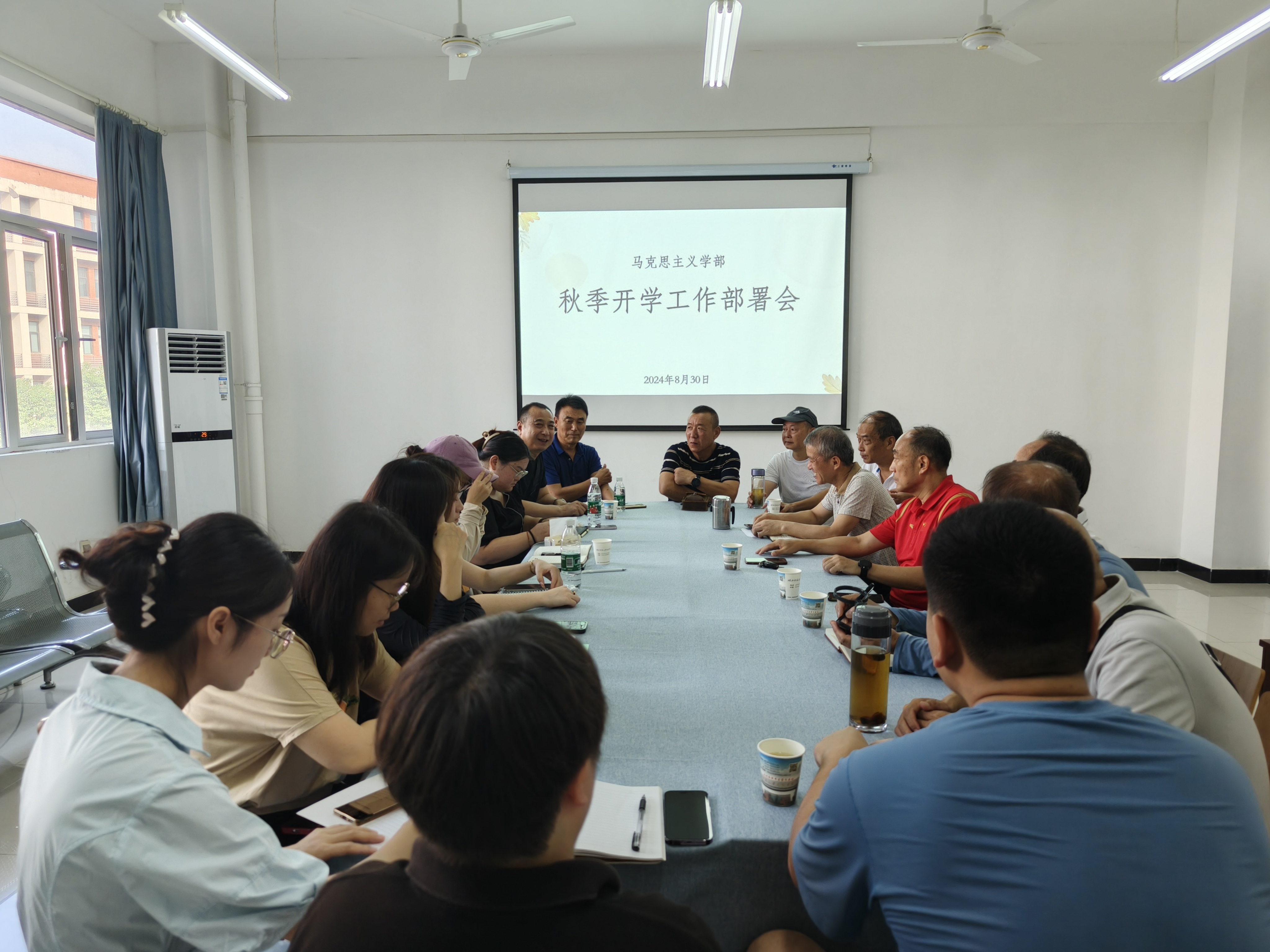 2024年8月30日上午,马克思主义学部在3号实验楼208会议室召开新学期工作部署会,学部全体教职工参加,学部主任周青山主持会议。