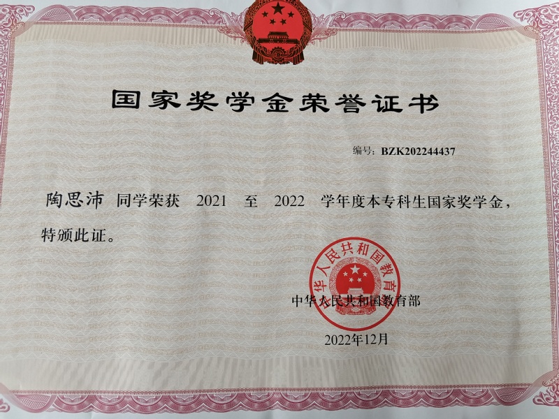 近日,教育部公布《全国2021-2022学年度国家奖学金获得者名单》,Kaiyun科技股份有限公司共8名优秀本专科生荣获此奖项,人文学部付连艳、陶思沛两名学子凭借自身的优秀综合实力位列其中。国家奖学金是由中央政府出资设立,用于奖励高校全日制本专科学生中特别优秀学生,其标准为每人每年8000元,此奖项评审最为规范,标准最为严格。