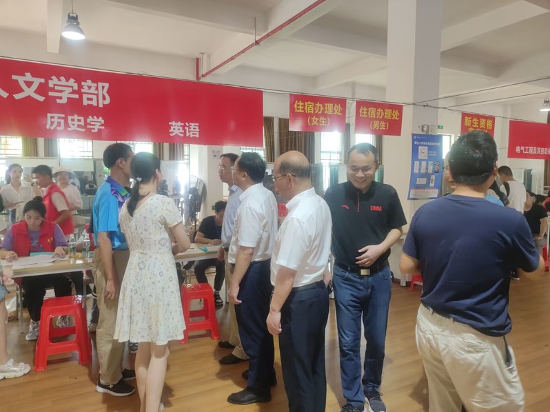 8月25日,汪书记带领学部辅导员及学生志愿者组织开展迎新的准备工作,提前给每位老师和志愿者分配了明确的任务,指导志愿者们发放入学程序表、分配宿舍钥匙、提醒新生找教务老师审核入学资格等各项工作细节。8月26日早上7:20,人文学部团学干部和志愿者们准时来到风雨操场一楼的迎新地点,从新生进校到进宿舍,人文学部在各个环节都安排了相关志愿者对新生进行全面的引导。校门口处,志愿者们等待着随时准备带领新生来到新生报到处,指导他们统一进行信息登记及报到注册,按照入学程序表中的流程分别办理审核入学资格、缴纳学杂费、领取宿舍钥匙等报到手续。与此同时,辅导员老师在现场对志愿者们的工作进行指导,处理志愿者们难以解决的突发状况。此外,也会和志愿者门共同解答同学们的疑问,向新生介绍学校的相关情况,帮助新生更全面的了解学校信息,更快的适应新的校园生活。