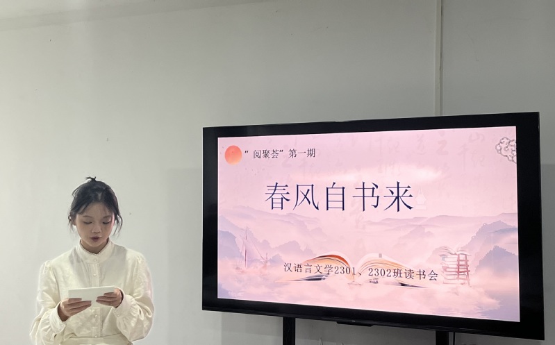 为深入贯彻习近平总书记关于青年工作的重要思想,培育和践行社会主义核心价值观,引导广大青年在读书中感悟书籍智慧,汲取奋进力量。4月19日下午,人文学部汉语言文学2301、2302班第一期“阅聚荟”读书分享活动在图书馆二楼研讨室顺利举办。30余名人文学子共赴一场书香盛宴,人文学部党总支书记周景斌莅临现场指导。