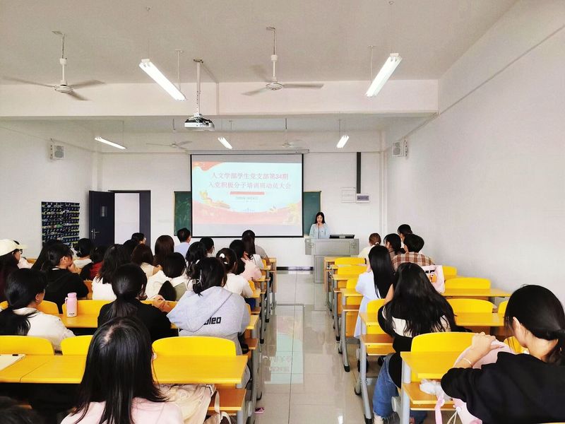 2024年10月8日中午12时,人文学部在3号实验楼418教室召开了2024年第34期入党积极分子动员大会,人文学部党总支书记周景斌、学生第一党支部书记高悦、学生第二党支部书记郭旭林以及91名入党积极分子出席大会。