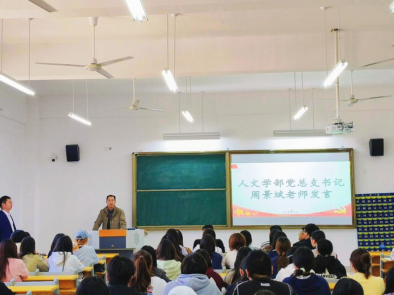 3月25日中午12时,人文学部第35期入党积极分子培训班开班动员大会于J3-101教室举行。本次活动由人文学部党总支主办,旨在加强入党积极分子的思想教育,坚定理想信念。人文学部党总支书记周景斌、团总支书记胡文玉,学生第一党支部书记高悦及辅导员程胜伟、杨峰、张一能、张思思代表出席,75名入党积极分子共同参与。仪式由学生第二党支部书记郭旭林主持。
