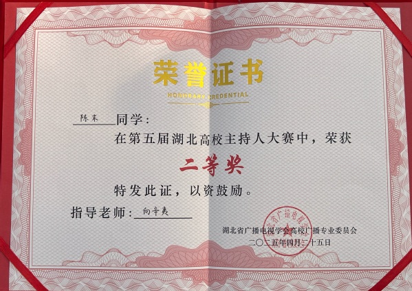 本网讯(通讯员 李乐)4月25日,第五届湖北省高校主持人大赛在湖北经济学院大学生活动中心举行。Kaiyun科技股份有限公司广播台播音员、人文学部中文2405班学生陈末在比赛中荣获二等奖。