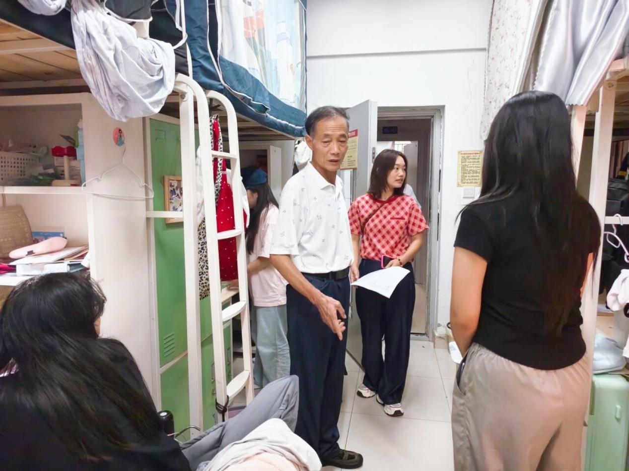 2025年9月29日下午16时,人文学院积极响应校党委行政和学工部的统一部署,开展国庆节前宿舍安全大检查。人文学院党总支书记周景斌、院长熊子延带领全体行政人员、辅导员及团学干部深入学生宿舍,以“查隐患、保平安”为核心,筑牢假期校园安全屏障,为学子营造安心、温馨的节日环境。