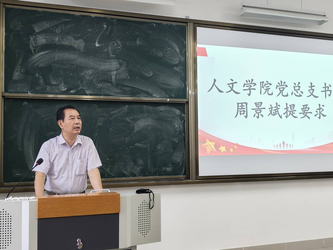 2025年10月10日12时,人文学院学生党支部第36期入党积极分子培训班动员大会于J3—112教室举行。学院党总支书记周景斌、学生党支部书记高悦、全体辅导员及第36期60位入党积极分子与会,大会由辅导员徐双勇主持。