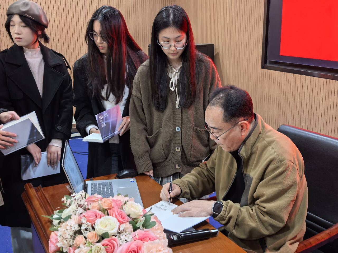 活动尾声,李咏成向沧浪文学社、磁湖文学社、校图书馆及人文学院师生赠送了亲笔签名诗集。