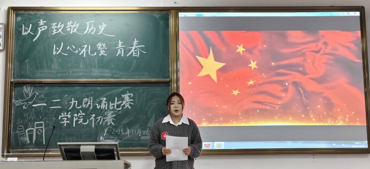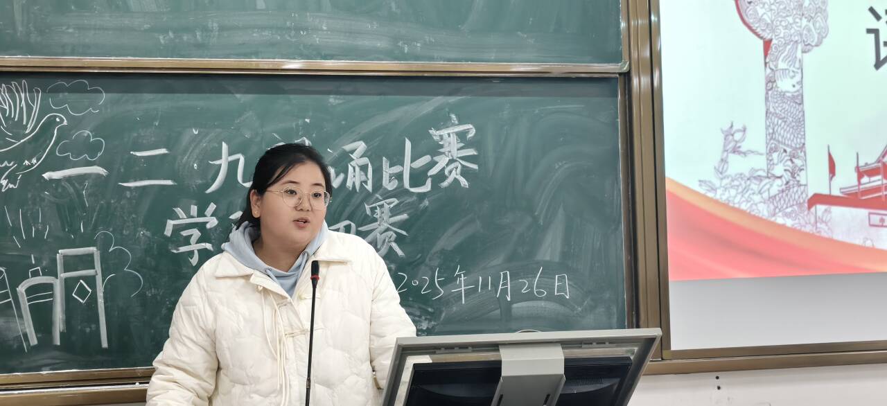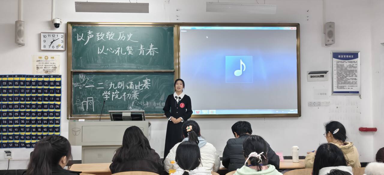 为纪念“一二·九”爱国学生运动,激发青年学子厚植家国情怀,传承红色基因,20251126日晚19时,人文学院于1B209教室成功举办“以声致敬历史 以心礼赞青春”主题朗诵比赛初赛。活动旨在通过诵读经典,引导学生深刻理解“一二·九”运动蕴含的民族记忆与精神内涵,凝聚青春力量,共筑中国梦。
