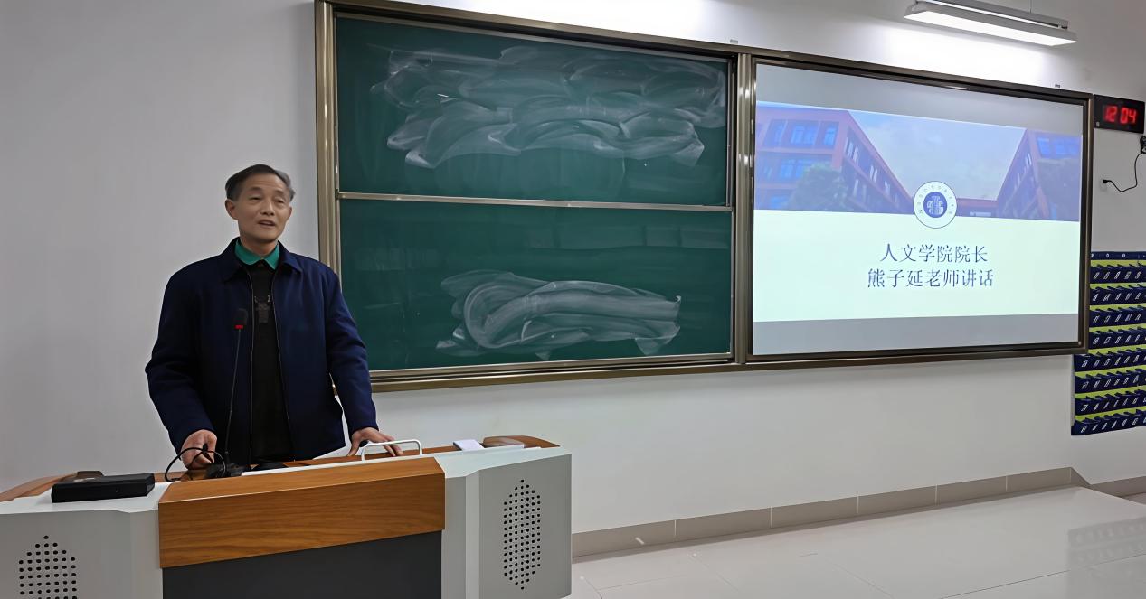 熊子延院长率先发表讲话,他殷切希望全体班干部积极配合学院教学工作,立足自身班级实际,梳理班级学风现状,带领同学们端正学习态度,树立清晰的学习目标,以自身行动为表率,携手将人文学院学风建设推向新的高潮。