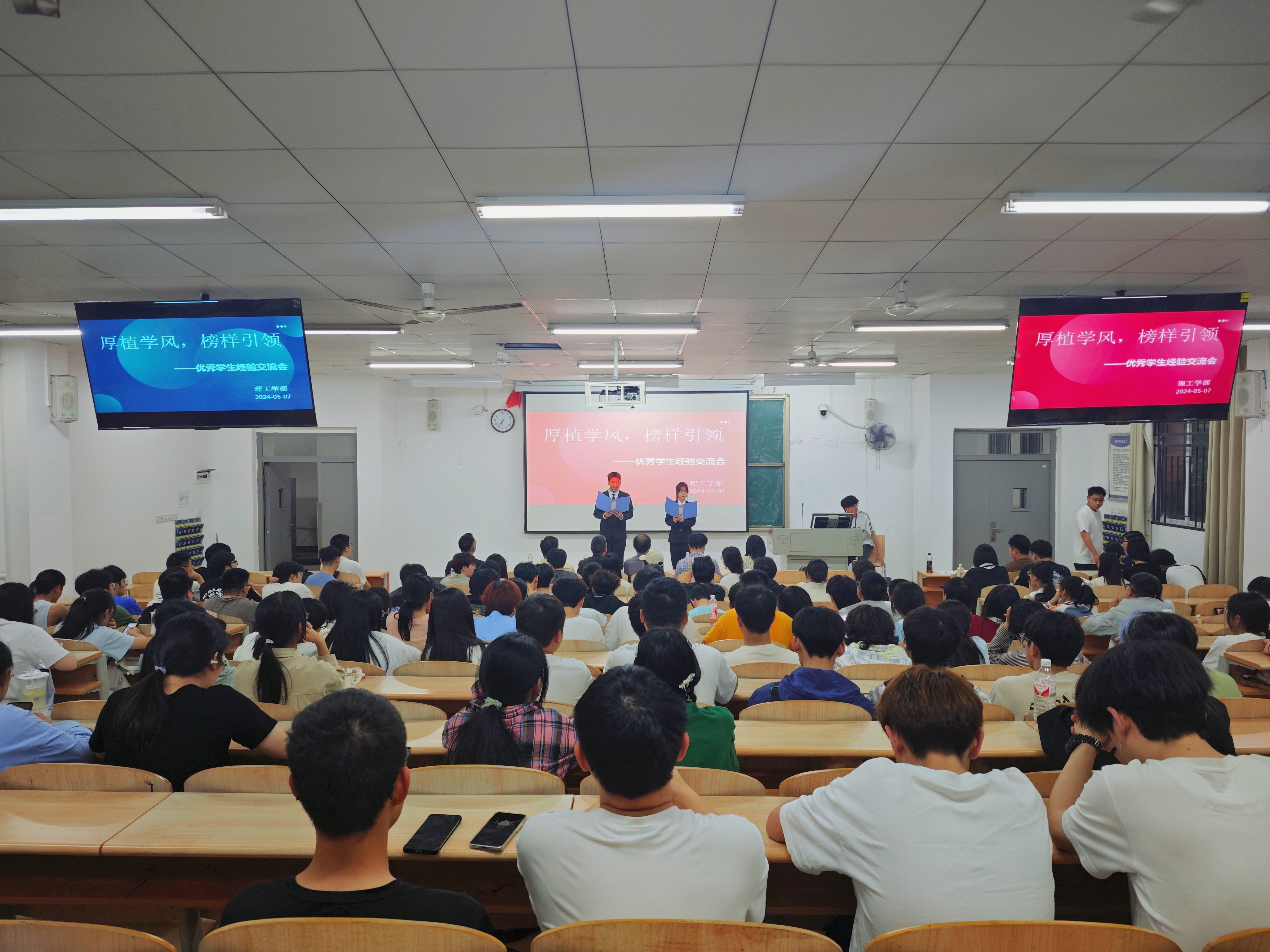 巩固加强学风建设,激发学生学习热情,做好职业生涯规划202457日晚,理工学部在教学楼开展了以“厚植学风,榜样引领”为主题的优秀毕业生经验交流会。本次交流会邀请了三优秀应届毕业生进行分享学部主任傅朝金教授、党总支书记肖圣芳以及全体老师们出席了该活动。