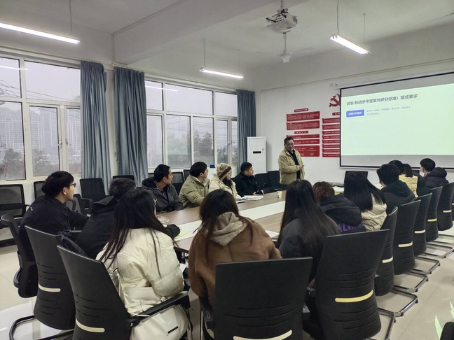 2024年12月11日下午,理工学部潘继斌主任给青年教师培训了试卷、参考答案与评分标准、阅卷规范等相关内容。青年教师工作经验较少,潘主任针对容易忽视的细节问题进行细致讲解,要求老师们第一次期末考试就要严格按照标准执行,不确定、不清楚的地方要及时确认清楚,尽早养成正确的、规范的制卷和阅卷习惯。