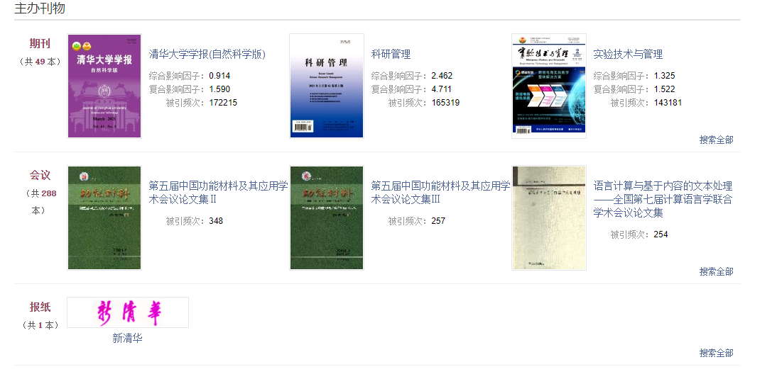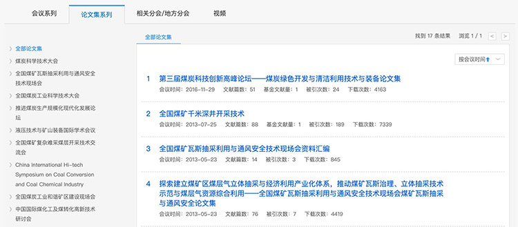 总库检索后,点击各资源类型名称,下方的检索结果区即为该资源类型文献。
