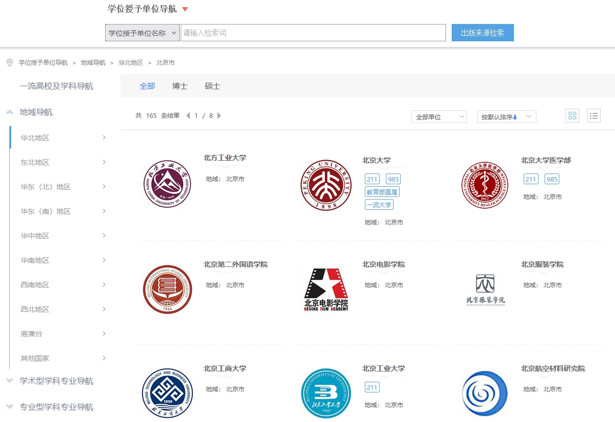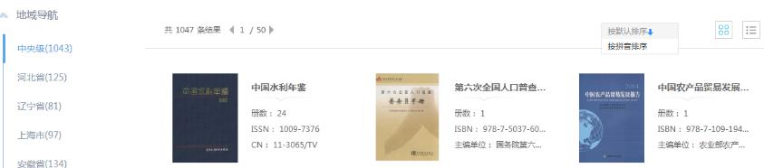 鼠标移入页头“导航”,显示各出版来源导航,点击进入相对应导航页面。