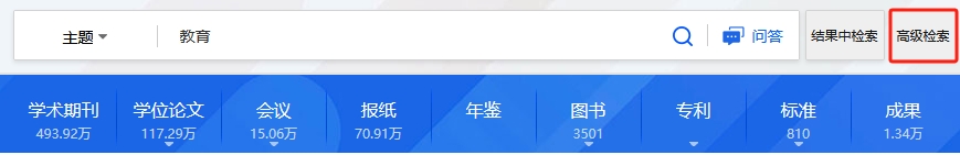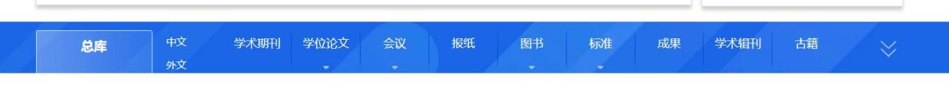 平台检索涵盖的资源类型有:学术期刊、学位论文、会议、报纸、年鉴、专利、标准、成果、图书、学术辑刊、特色期刊。