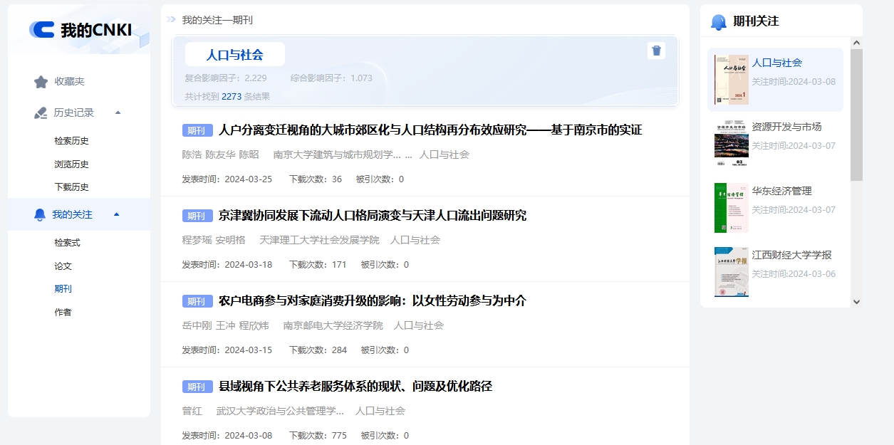 6.3我的关注 > 6.3.3 期刊关注