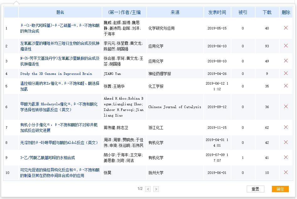 管理已关注期刊,可点击删除按钮,取消关注。