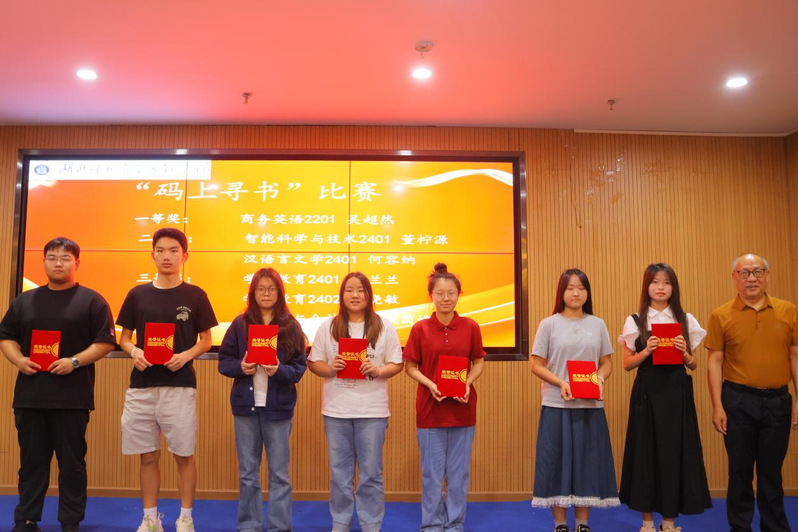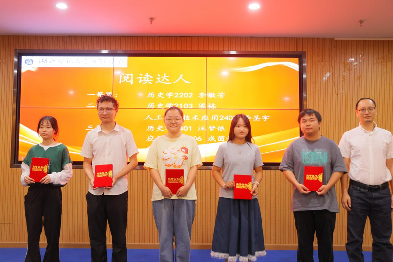 闭幕式表彰了本届读书月各项优胜单位和个人,人文学部荣获“书香学部”,历史学2401班、英语2401班、汉语言文学2401班、人工智能技术应用2402班、市场营销2401班和物流管理2401班荣获“书香班级”,李敏芳等10位同学荣获“阅读达人”荣誉称号,张力等7位同学分别荣获“科技与人文:经典作品中的未来想象”征文比赛一二三等奖,吴超然等6位同学分别荣获“码上寻书”比赛一二三等奖。