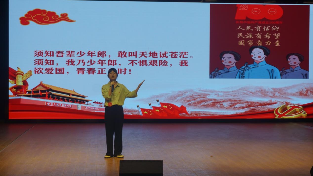 主讲人陈晨霞以共产党实质为切入点,向观众讲述建党以来的百年辉煌,号召青年人应以青春姿态,捍卫盛世之中华;来自国旗班的主讲人刘佳欣分享自身训练日常,结合中国共产党成立的艰辛历程与光辉岁月,论述青年奋斗的意义;主讲人刘馨蔓通过讲述自己在疫情期间的志愿经历表达对疫情工作人员的敬佩,传递中华民族不分你我的恩情。十三位优秀主讲人共同表达了对革命先辈的崇敬,对百年党史的缅怀,赢得了全场观众们的掌声。