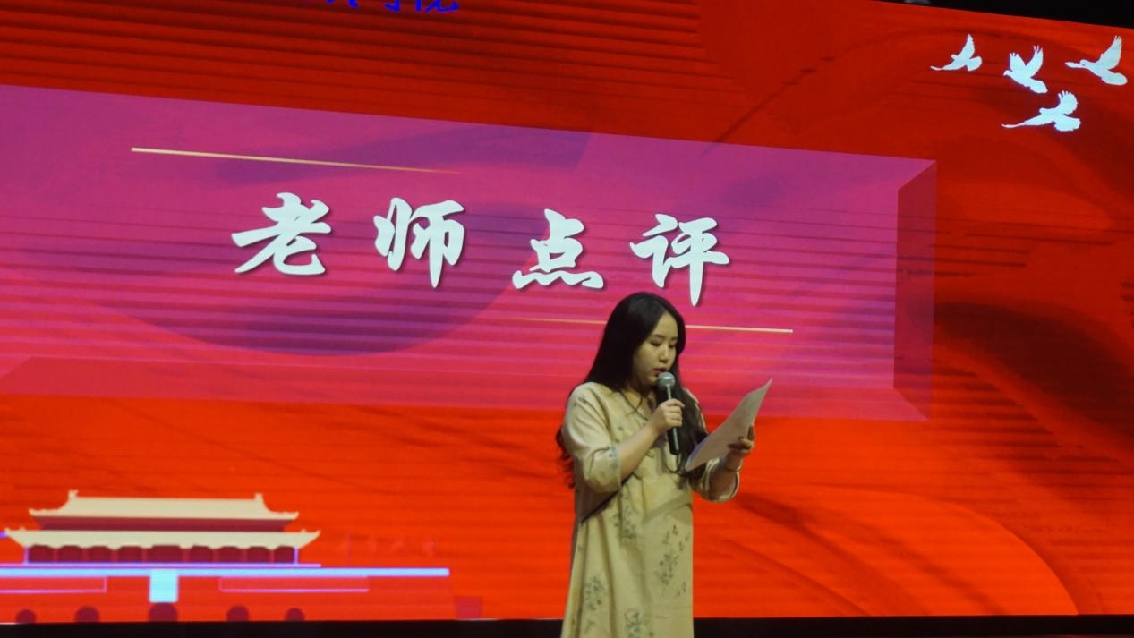比赛结束后,刘婉依老师进行点评,她表示,看到13位选手的精彩演讲,仿佛看到了100多年以来中国青年的生动群像,带领大家重温中共百年历程,同时指出选手们应放松心态以减弱紧张情绪取得更好的发挥,并对广大青年学生提出殷切期望和寄语。