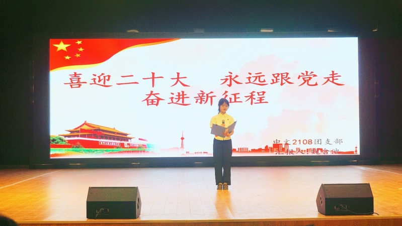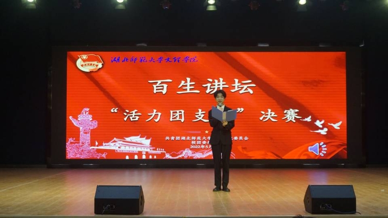 国旗班团支部从日常训练、学部升旗、爱国主题教育课、观影活动、知识竞赛五个主题讲述支部荣誉与理论前进方向,以情景剧的形式展示支部的独特风采;中文2108班团支部结合专业特色,朗诵红色经典,彰显青春担当;教育与艺术学部小教2003班团支部树立全面发展的支部理念,在“支部风采展示”环节中以独具创意的手势舞展现“生在红旗下”新青年的蓬勃朝气。场上选手用慷慨激昂的演讲辅以丰富多彩的多媒体,使展示精彩纷呈,掌声不绝。