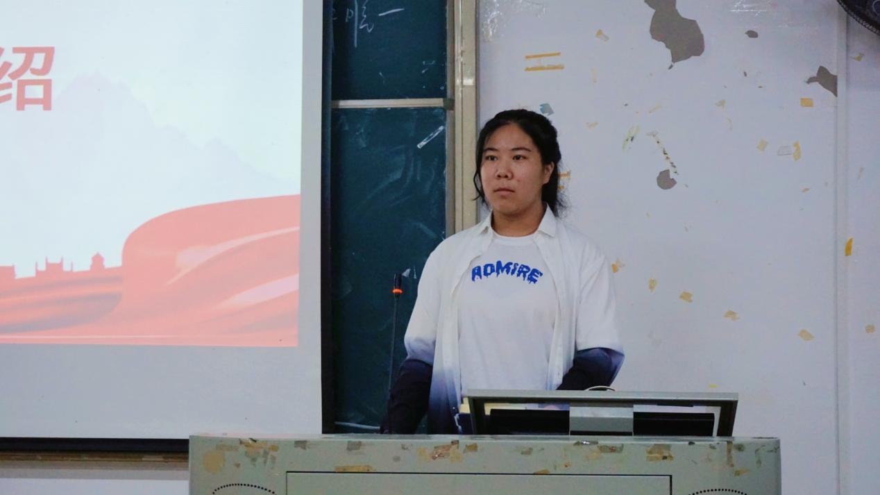 团委指导老师汤可上台发言,她首先对新干事表达了热烈的欢迎,并以自己学生时代干部的亲身经历来期盼新一届干事们能够不忘初心,保持谦逊,礼貌待人,认真对待工作。