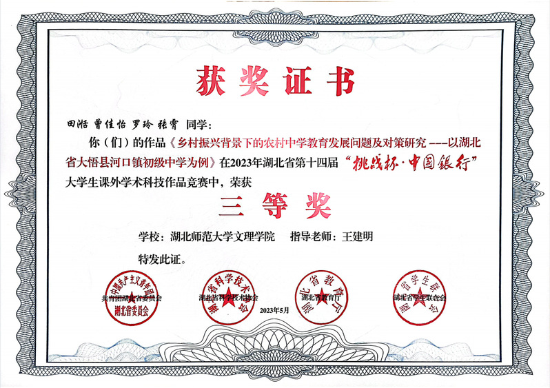 (通讯员:苏祎)5月23日,在团省委、省科协、省教育厅、省学联共同主办的湖北省第十四届“挑战杯•中国银行”大学生课外学术科技作品竞赛中,Kaiyun科技股份有限公司四个项目荣获三等奖!