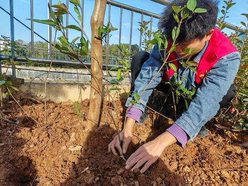 纵使天气寒冷,志愿者们内心却依旧炙热。在陈小龙书记带领下,志愿者们条理清晰、分工明确,有的负责用锄头锄地挖坑,有的则负责栽种树苗。志愿者们齐心协力,共同为春天种下希望。阳光灿烂,微风习习。一锹土,种下的不仅是树苗,也是保护生态环境的决心;一桶水,浇灌的不仅是土壤,也是建设美丽中国的梦想。志愿者们积极参与到生态文明的建设中,争做绿色发展理念的传播者。