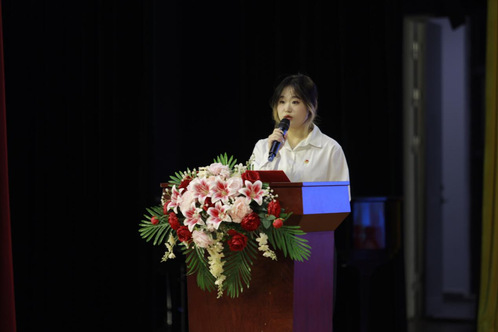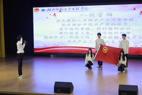 新团员代表曾维方和优秀团员代表张琬琪分别上台发言。曾维方以饱满的热情和坚定的信念表达了对共青团的热爱和对未来的憧憬,她表示将在各方面要求自己,不断学习进步,积极参与团组织的各项活动,为团组织增添光彩。随后,张琬琪分享了自己过去的经验与深刻感悟,强调始终坚信共产主义信仰,不忘初心,牢记使命,向我们展示了作为共青团团员的责任与担当。