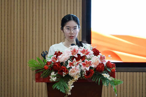 校团委青年志愿者协会执行会长袁欣作为新干部代表发言,她强调了团学联干部要做好服务者与引领者,要提升能力、团结协作,以奋斗与担当推动团学联工作迈上新台阶,为校园建设贡献力量。