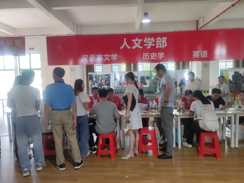 8月25日,汪书记带领学部辅导员及学生志愿者组织开展迎新的准备工作,提前给每位老师和志愿者分配了明确的任务,指导志愿者们发放入学程序表、分配宿舍钥匙、提醒新生找教务老师审核入学资格等各项工作细节。8月26日早上7:20,人文学部团学干部和志愿者们准时来到风雨操场一楼的迎新地点,从新生进校到进宿舍,人文学部在各个环节都安排了相关志愿者对新生进行全面的引导。校门口处,志愿者们等待着随时准备带领新生来到新生报到处,指导他们统一进行信息登记及报到注册,按照入学程序表中的流程分别办理审核入学资格、缴纳学杂费、领取宿舍钥匙等报到手续。与此同时,辅导员老师在现场对志愿者们的工作进行指导,处理志愿者们难以解决的突发状况。此外,也会和志愿者门共同解答同学们的疑问,向新生介绍学校的相关情况,帮助新生更全面的了解学校信息,更快的适应新的校园生活。