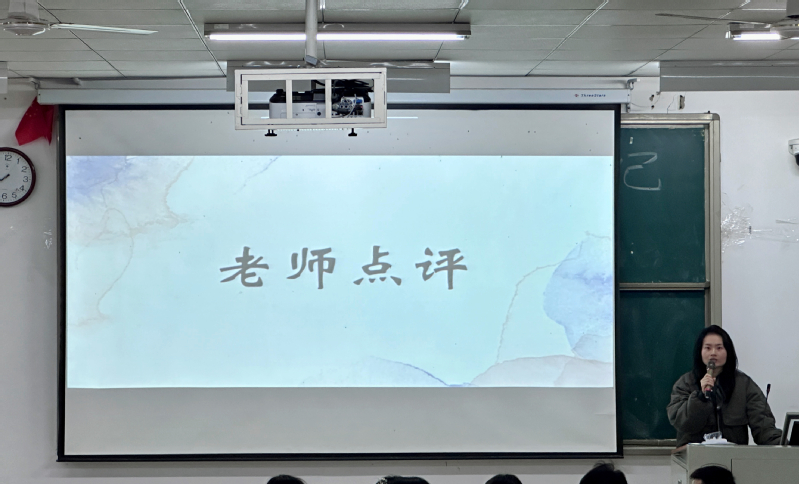 辅导员丁书嫚老师从演讲稿的准备、契合听众的兴趣、结构安排以及演讲技巧四个方面进行整体点评,分享心得体会,为大家提供了宝贵的建议。