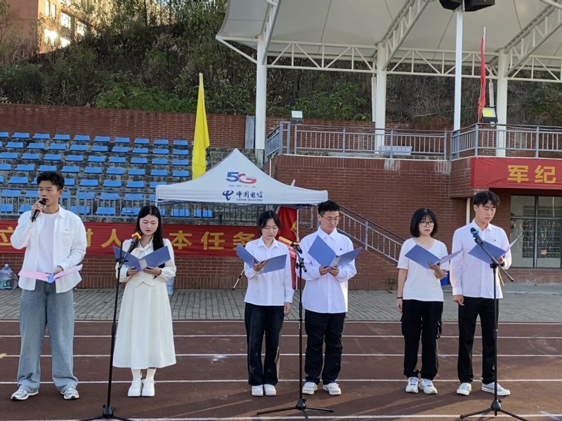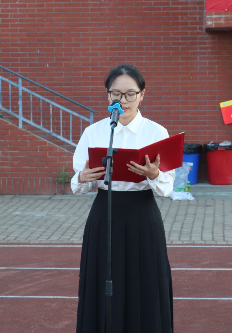 历史学2201班刘畅代表全体学生发表国旗下讲话,她表示要厚植家国情怀、涵养进取品格,以奋斗姿态激扬青春,不负时代、不负华年。呼吁大家坚定信仰、保持定力,以实际行动践行对党和人民的承诺。