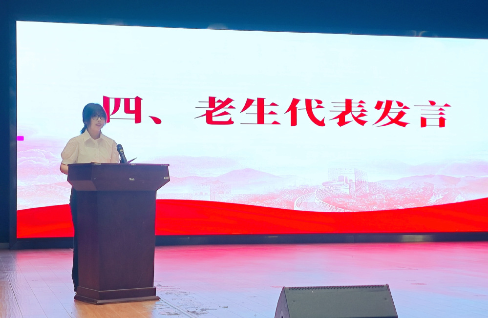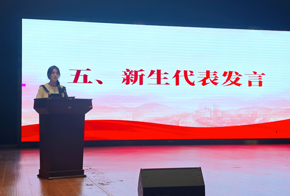 在校学生代表英语2303班黄立玲同学分享了她的学习心得与生活感悟,鼓励新生相信自己,秉持校训,在大学拼搏成长。英语2502班邢倩文同学作为新生代表发言,她以满腔热忱,对未来发出,展现了新一代外院学子的精神风貌和对未来的美好憧憬。