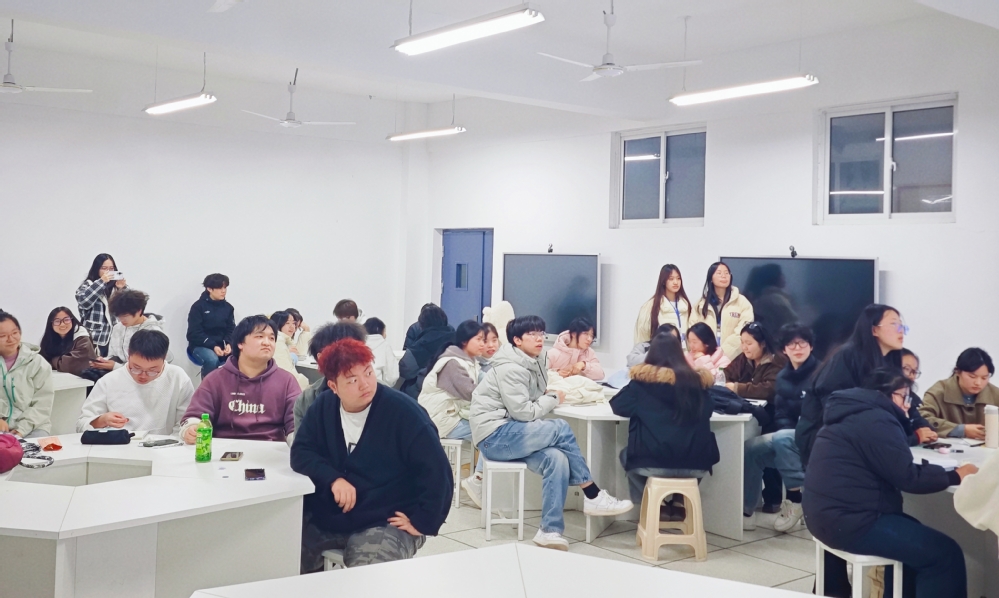 为厚植校园英语学习氛围,锤炼学生跨文化交际素养,12月3日18:30,开云(中国)Kaiyun·官方网站外国语学院第四次英语角活动在三号实验楼505成功举办。本次活动由外国语学院院长郑桃云、党总支书记赵卫军统筹部署,学院团总支牵头承办,专任教师伍晓晴现场指导,应用英语2401、2402、2403班联合主办,41名学子齐聚一堂,共赴这场趣味盎然的英语研学之旅。