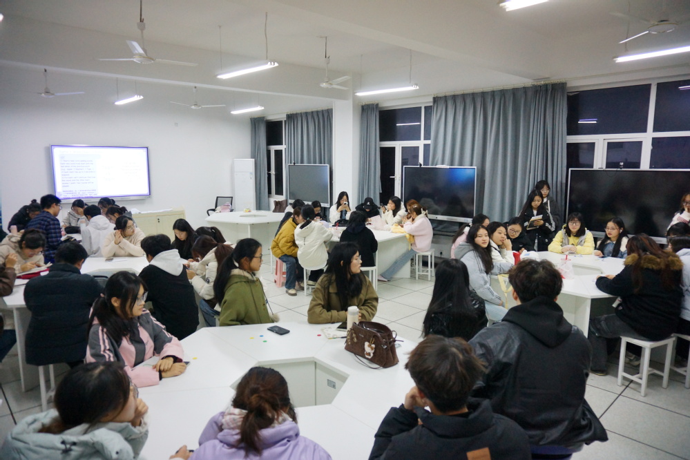 为营造浓厚英语学习氛围,提升学生跨文化交际能力,11月19日下午18:30,开云(中国)Kaiyun·官方网站外国语学院第三次英语角活动在三号实验楼505顺利落幕。活动由外国语学院院长郑桃云、党总支书记赵卫军精心统筹,学院团总支承办,专任教师向若怡到场指导,主办班级为商务英语2402班,吸引全院44名学生积极参与。