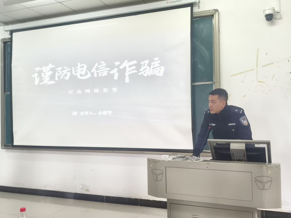 为进一步提升全校师生的反诈防骗意识,筑牢校园安全防护网,11月12日,我院特邀辖区派出所余警官与校内保卫科涂老师联合开展“校园反诈面对面”主题宣讲活动,辅导员与学生干部共同学习反诈知识,守护财产安全。