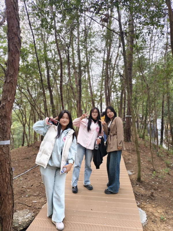 活动特邀创业代表、阳新文旅发展有限公司总经理尹文海,在“实地参观+创业分享”环节,他结合自身挖掘阳新文旅资源、创办特色项目的经历,向师生解读返乡创业扶持政策,分享“以创业带动村民家门口就业增收”的实践经验,面对面解答学生关于项目运营、资源整合的疑问;在“实地体验+赛道挖掘”环节,师生体验山地越野车、玻璃漂流、彩虹滑梯等项目,沉浸式感受文旅运营,并围绕阳新文旅特色赛道展开交流,提出“文旅+非遗”、“乡村研学”等思路,进一步打开就业与创业思路。
