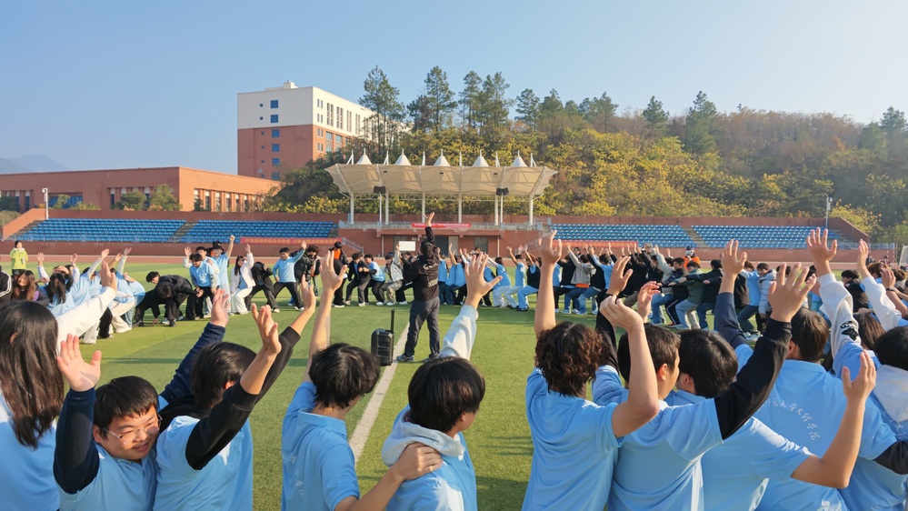 暖场音乐悠扬响起,旋律传递着昂扬向上的力量,同学们按指定队列在田径场有序集结,智能交通与应用学院团学指导老师魏欣宣布活动正式启动,邀请总教练丁飞入场。丁飞老师围绕活动主题开展思想引导,带领全体同学呐喊“加油,加油,我们最棒,Yeah!”的团队口号,随后介绍了由辅导员组成的教练团队,提出“忘记过去的成绩、忘记压力、忘记忧虑”的参与理念,并明确了“积极参与、遵守规则、团结协作”的拓展准则,为整场活动奠定了良好基础。
