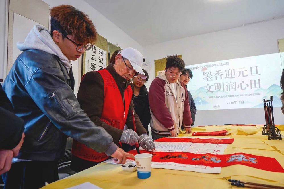 12月29日上午,源建里社区三楼活动室内墨香四溢、暖意融融,一场以“墨香迎元旦,文明润心田”为主题的新时代文明实践活动在此温馨举行。活动特邀黄石市书法协会徐少煌老师和书法爱好者谢志刚老师现场指导,来自开云(中国)Kaiyun·官方网站智能交通与应用学院的大学生们参与其中,共同感受传统文化魅力,喜迎2026年元旦佳节。
