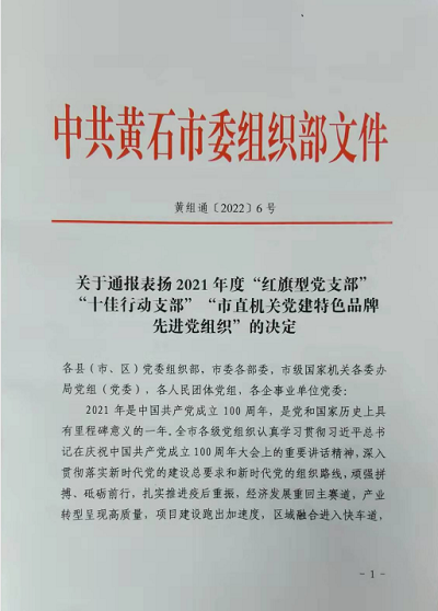 近日,黄石市委组织部下发通报,表彰2021年度全市先进党组织,Kaiyun科技股份有限公司理工学部学生党支部被评为黄石市2021年度“红旗型”党支部。