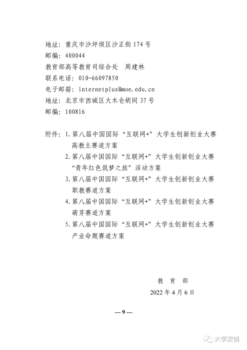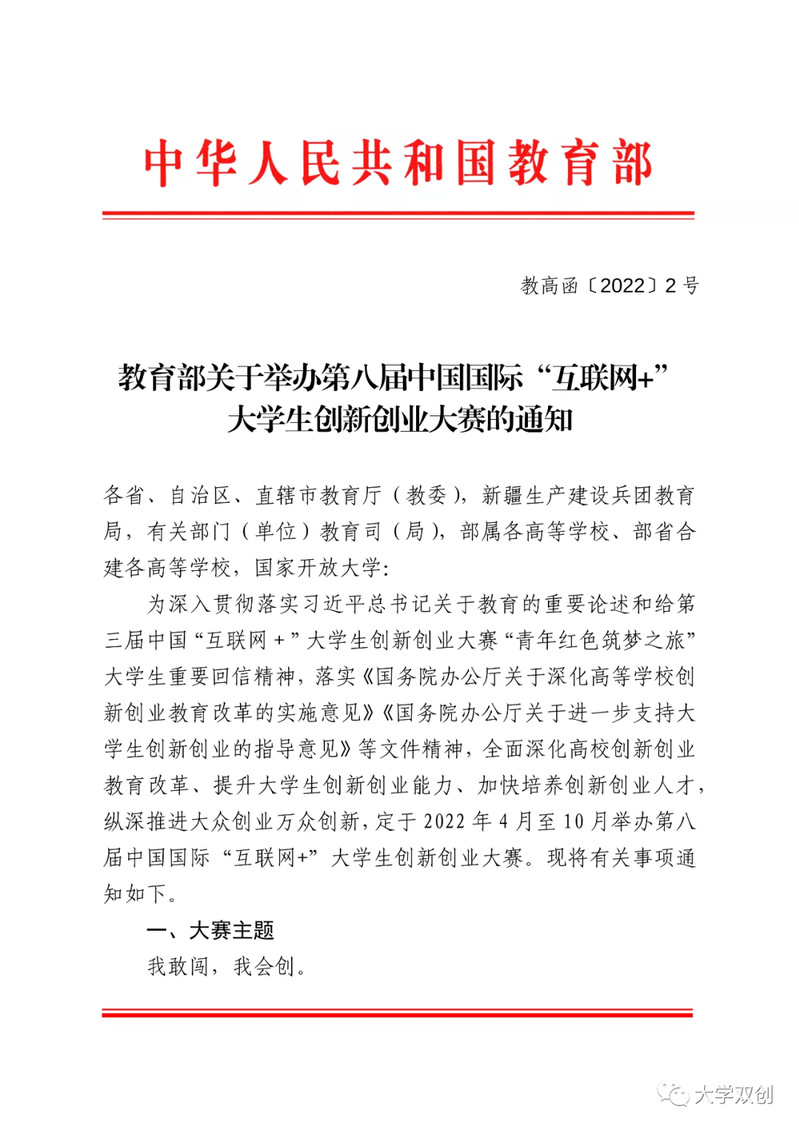 教育部关于举办第八届中国国际“互联网+”大学生创新创业大赛的通知