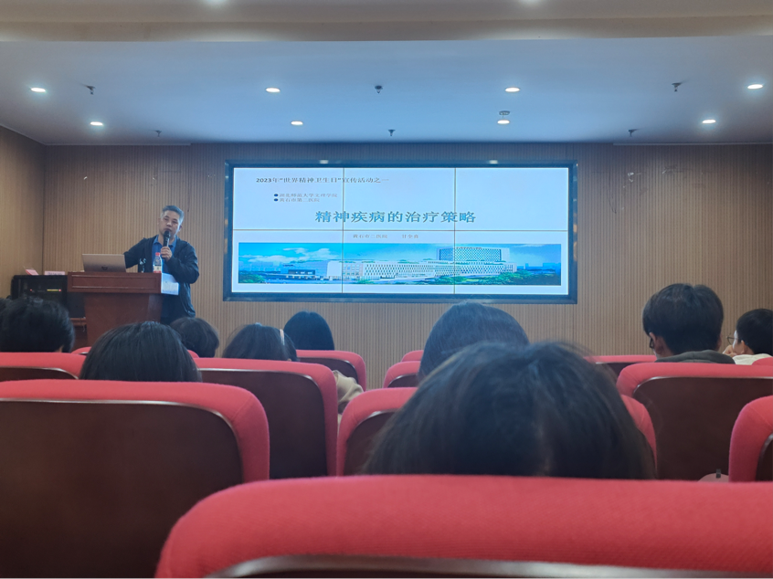 为助力本次心理健康月的正式开展,晚上19:00,Kaiyun科技股份有限公司心理中心邀请到黄石二医院精神心理科主任甘全喜医生主讲“精神疾病的治疗”。甘医生首先介绍了精神疾病的总体分类、病因、特点、诊断、简史和治疗。指出精神疾病不同于其他疾病,其精神疾病器质性症状到后期才会显现。随后甘医生对妄想、抑郁症、躁狂症、双向情感障碍、人格障碍及性心理障碍等病症进行了详细介绍。讲座的最后,甘医生其独到的见解为在场的同学答疑解惑,赢得了一致好评。随着讲座的谢幕,本次心理健康月启动仪式正式谢幕。