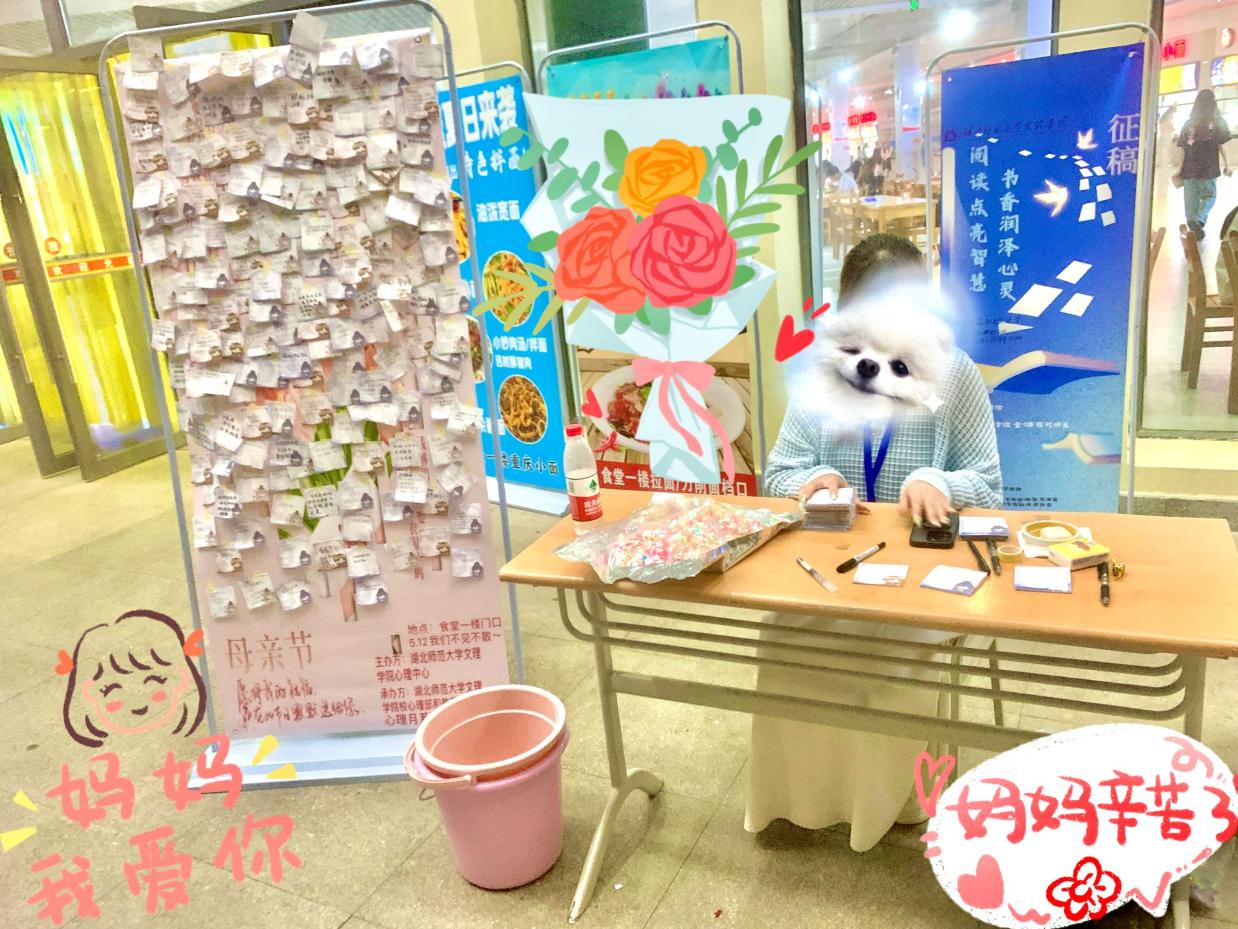 本活动由开云(中国)Kaiyun·官方网站心理中心主办,教育与艺术学部心理部承办于2024年5月11日9:00至9:00 食堂门口一楼展开“爱没有方向,你就是导航”的母亲节活动。本次活动面向全体学部所有师生,由教育与艺术学部心理部部长、教艺学部副主席带领其部门八位干事顺利展开。