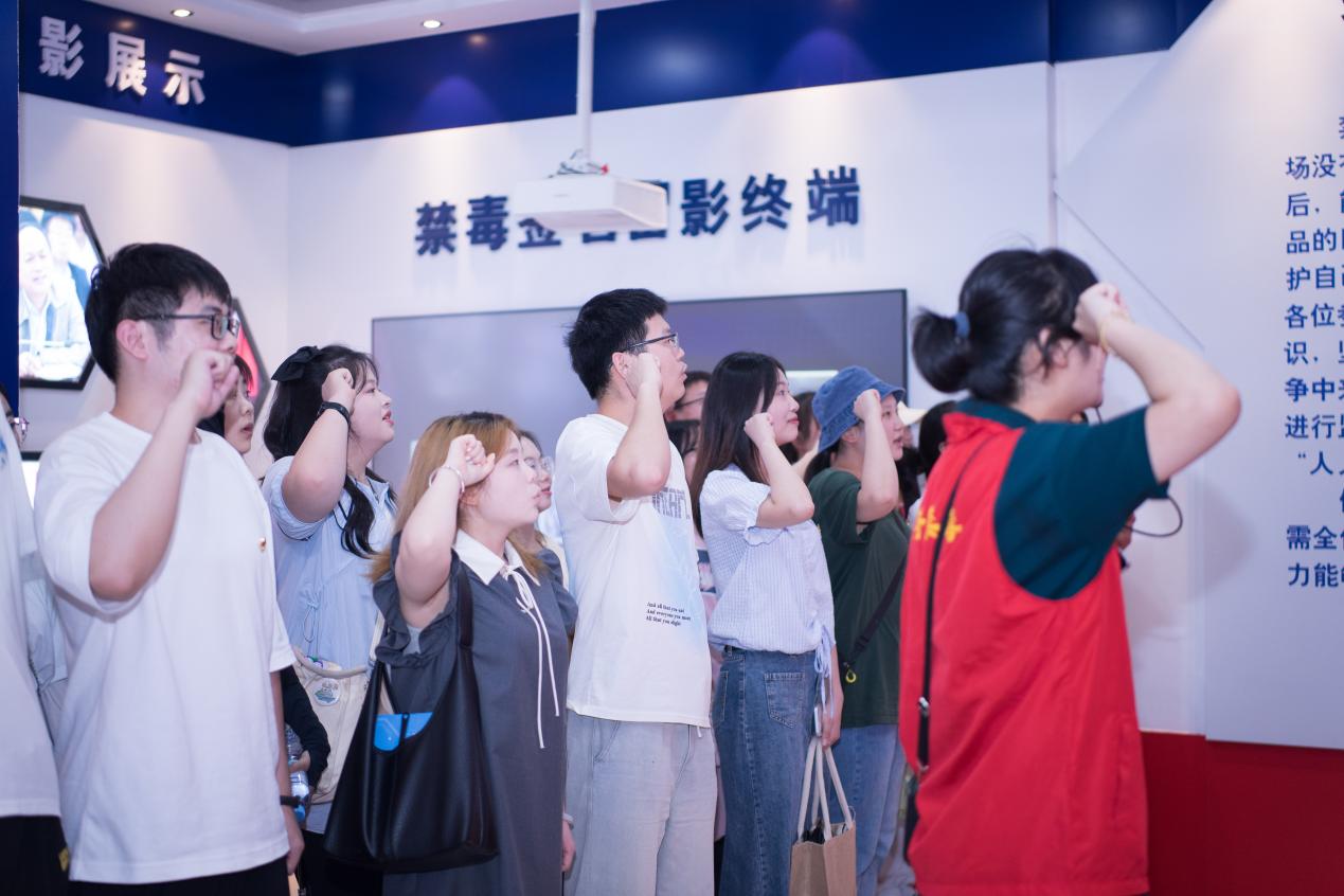 讲解结束后,讲解员带领全体成员进行禁毒宣誓。全体同志举起右手,用洪亮激昂的声音庄严宣誓,以表达自觉抵制毒品的坚定决心。