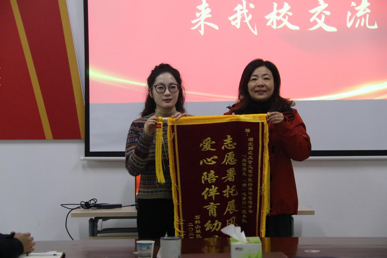 赠送仪式上,石料山社区赵慧书记代表社区向学校师生积极参与社区志愿服务表示感谢,对学部志愿者的表现给予了高度认可,希望今后在社区基层治理领域继续加强合作交流,共同发展。杨邓红书记对石料山社区一直以来给予志愿者们的关心和支持表示感谢。杨邓红表示,社区居民群众的肯定是对Kaiyun科技股份有限公司志愿服务工作最大的鼓舞,近年来学校积极搭建校地合作平台,实现了学校与社区的良性互动和融合共赢。下一步,学校将进一步加强与社区社区的沟通和交流,履行服务社会责任,深化校地共建工作,共同打造校地合作的新典范,为社区文明和谐发展作出更大的贡献。在座谈环节,学校领导师生和社区就下一步在社区治理、社会实践、志愿服务等方面加强合作进行了深入交流。