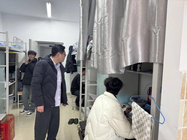 2月16日下午5点,翔宇航空产业学院主任夏谦启带领全体辅导员进行寝室走访,在深入了解学生返校情况的同时,对学生宿舍的安全管理也进行了强调。 在走访过程中,各位老师重点查看了卫生环境、用电安全等方面的情况,特别叮嘱在流感高发的春季,学生更要注重寝室卫生,多打扫、勤通风。另外返校后要及时调整状态,以饱满的热情投入到新学期的学习生活中去。 夏主任强调,在日常学习与生活中,大家要增强安全意识,提升自我反诈能力,在校使用共享电瓶车要遵守相关规定,共同维护安全、文明、和谐的宿舍环境。