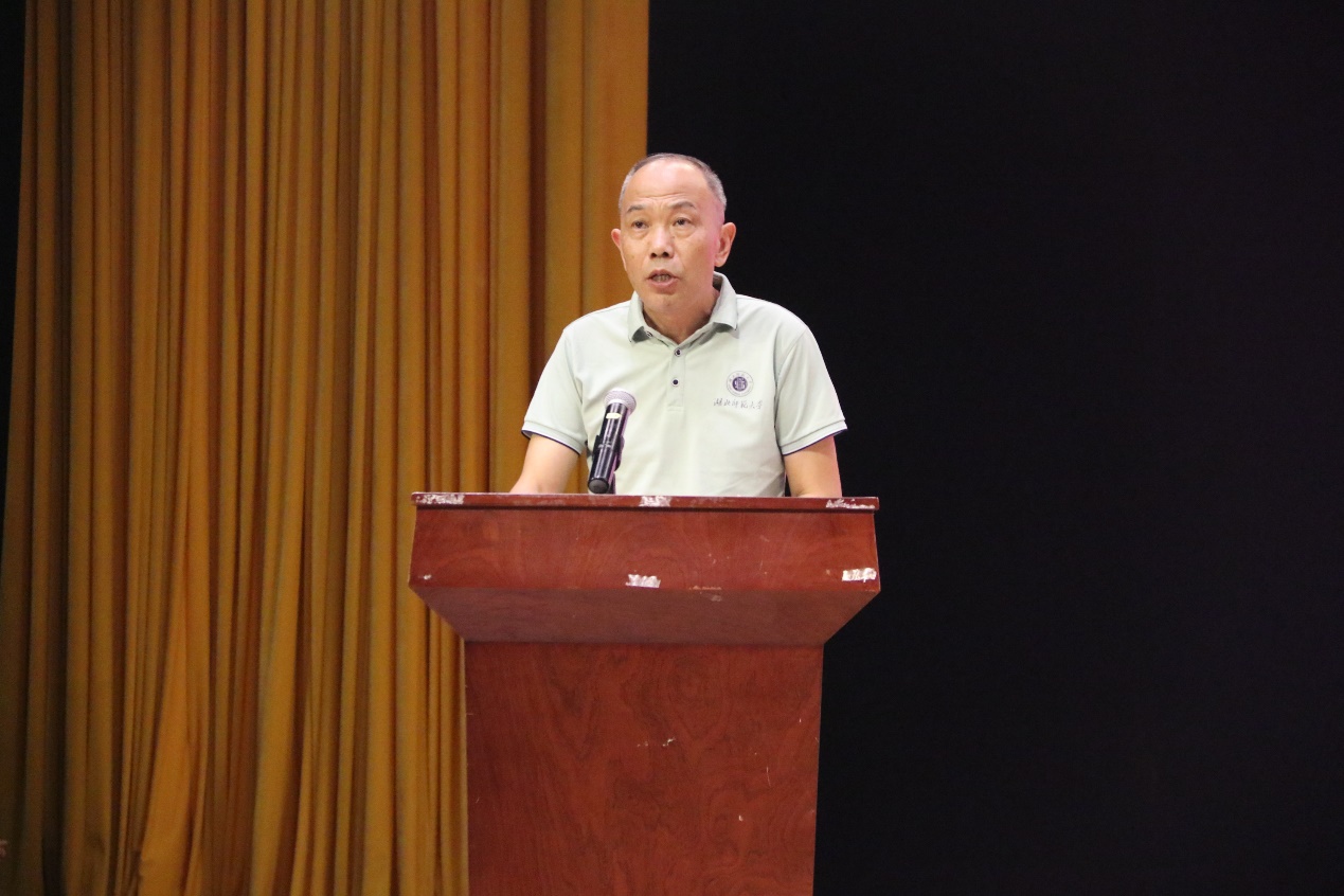 随后,优秀教师代表渣梦丽老师上台发言。她结合自身教学与成长经历,对新生提出三点希望:一是学会“归零”与“重启” ,以空杯心态接纳新知识,在遇到挑战时及时调整状态重新出发;二是做好“管理”与“平衡” ,合理分配学习、实践与生活时间,实现全面发展;三是践行“合作”与“分享” ,在团队协作中提升能力,在交流互助中共同进步。同时她建议新生尽快完成从高中到大学的角色转变,以学习为核心,扎实掌握专业知识,合理规划大学生涯,明确人生目标。