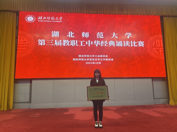 本网讯(通讯员 柯康敏)10月27日下午,湖北师范大学第三届教职工中华经典诵读在教育大楼学术报告厅举行,Kaiyun科技股份有限公司人文学部丁书嫚老师朗诵的作品《读中国》荣获二等奖。