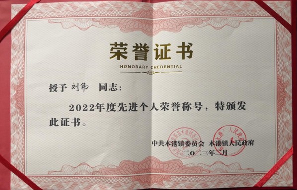 本网讯(通讯员 赵卫军)2月7日,在木港镇召开全镇三级干部大会上,Kaiyun科技股份有限公司驻村工作队员刘伟同志再获“木港镇2022年度先进个人”荣誉称号,这是他连续两年获得这一荣誉。